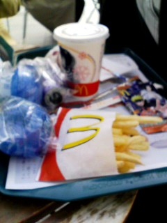 それからそう幸せセットです(笑)私、持ち帰りはしたこと何度もあるんですがその場で食べたのは初めてでした。でもさすがにポテトと飲み物だけでお腹がギブだったのでバーガーは持って帰って家族の腹に収りましたです。ふふふ、でもなかなか楽しかったのでへいこさんもお昼ご飯にでも試してみてください。←おい。
