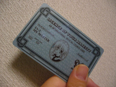 ↑写真はメンバーズカードで、「ご主人様認定書」というのだそうです。これブロンズカードですが、何度も通うとシルバー、ゴールドとカードが格上げされて行くらしいですよ(^^;更にその上にはクリスタル・プラチナカードもあるそうで、一体何度通ったらプラチナカードを持てるのか想像もつきませんです。