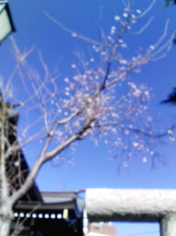 今日はさすがに昨日のように寝たきりではいかんとはつもうでに行って来ました。近所の神社なんですが桜が咲いていましたよ。早咲きなのかな?