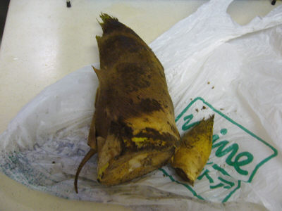 お裾分けでたけのこを貰いました。竹の子掘りに行って来たそうでちっちゃい子はおまけです。