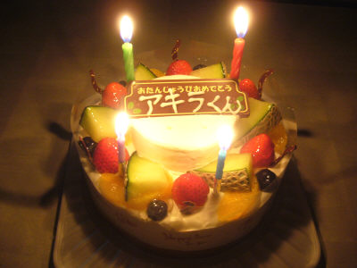 昨日はケーキを食べてアキラの誕生日を祝いました。なんかもーヒカルとアキラの誕生日が家庭内行事に違和感無く入ってしまっているこの不思議(^^;